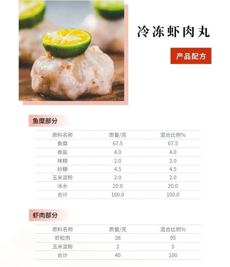 鱼虾丸是一种以虾和鱼为主要原料,经过一系列加工工艺制成的肉丸类制品。其主要原料包括虾、鱼、面粉、淀粉、鱼糜、油脂和调味品等。制作过程包括鱼糜加工、虾糜加工、主辅料配比混合、成型煮制、真空包装、微波灭菌和冷库贮存等步骤。