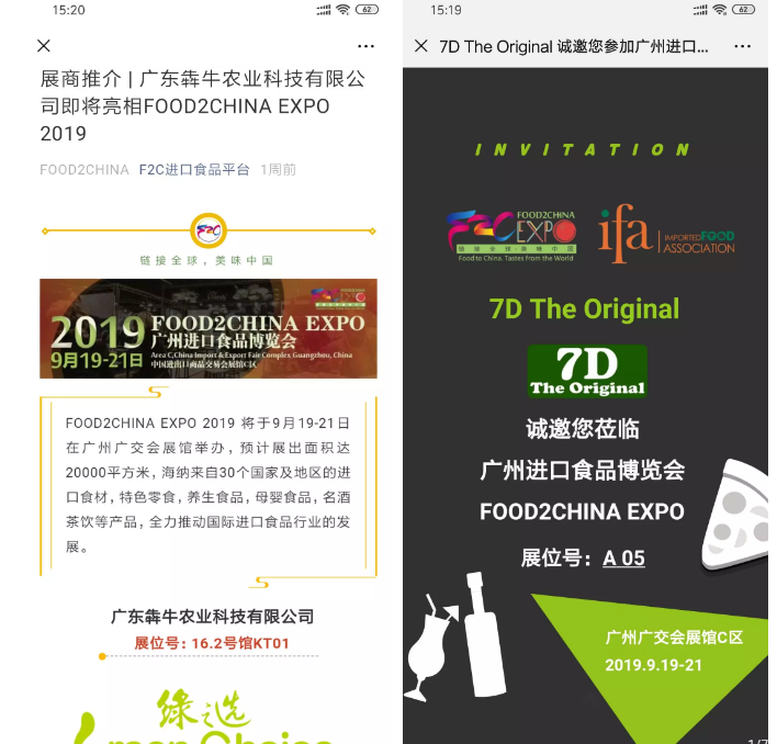 做足展前宣传推广工作可以吸引更多的新老客户关注展会及参观展会,以达到更佳的展会效益。官方网站、微博平台、微信平台有没有发布企业的参展信息及展会期间的企业活动?FOOD2CHINA EXPO 2020为展商推出H5邀约观众模板,还会在“F2C进口食品平台”推出展商推文,赶紧找我们把宣传做起来,每一个展商都不落空。