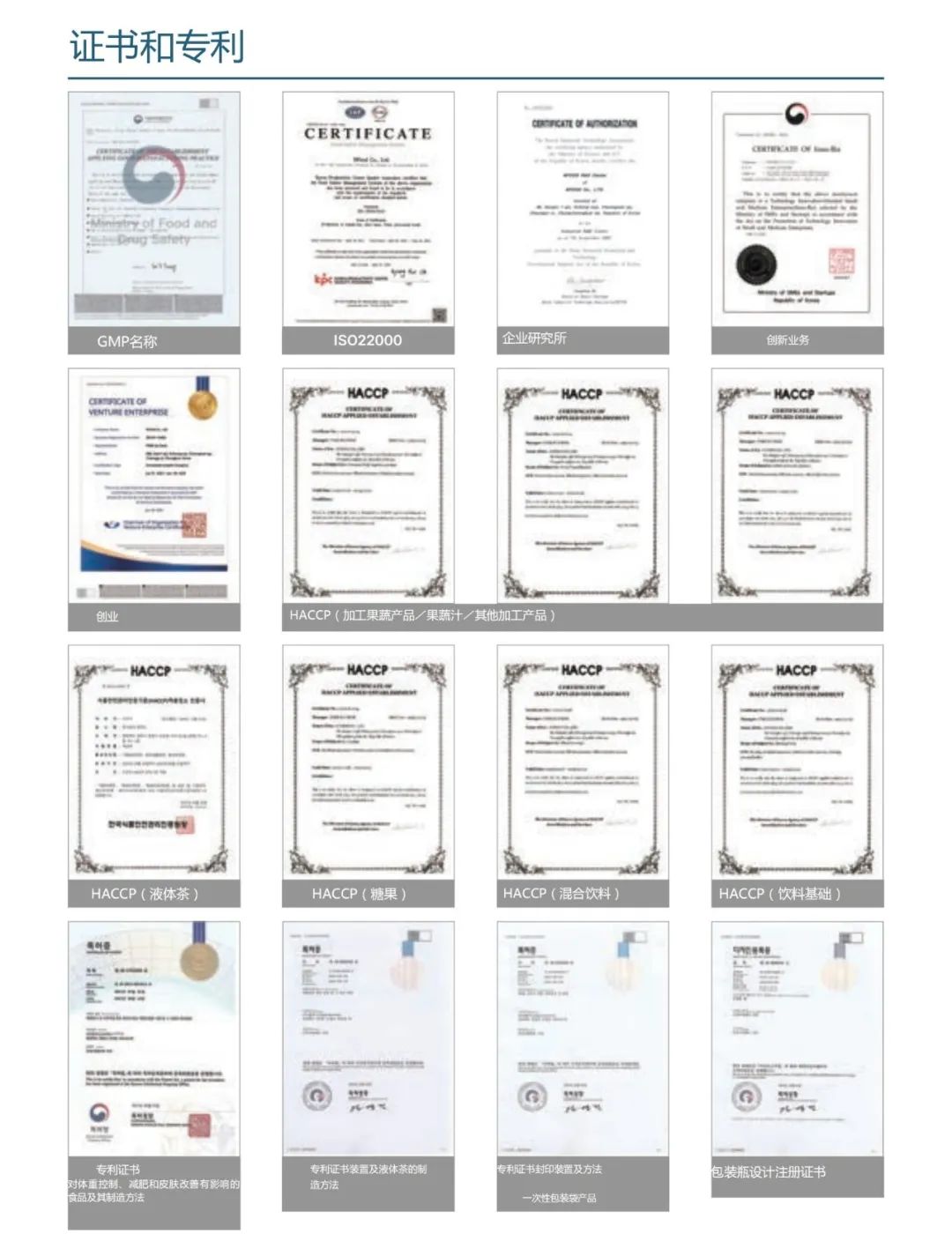 NFOOD has received the following certificates and certifications: