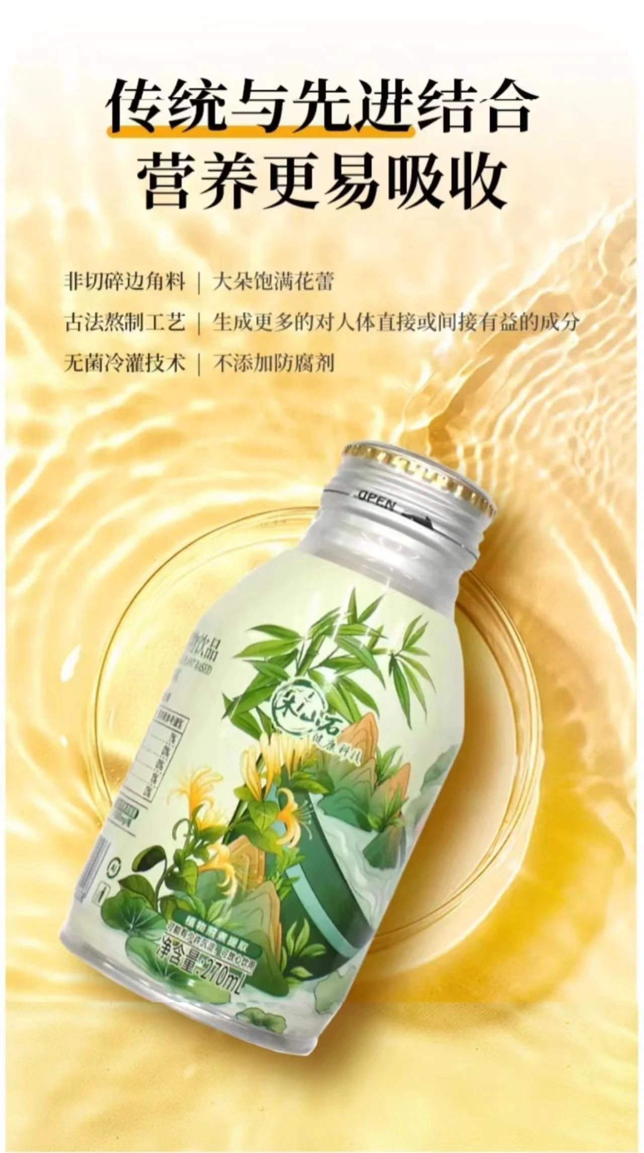 饮用体验随四季流转焕发双重魅力:夏季冷藏后畅饮,清凉草本瞬间驱散暑热油腻,唤醒身心活力;冬季温热饮用,激发陈皮与金银花交融的馥郁暖香,温养脾胃的同时抚慰身心。这种突破季节限制的养生方案,配合简约轻奢的铝罐美学,使其成为都市精英、健身人群、银发族等追求高品质生活群体的理想健康伴侣,覆盖写字楼、健身房、商超等多元消费场景。