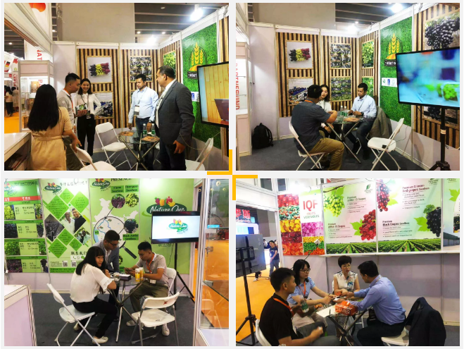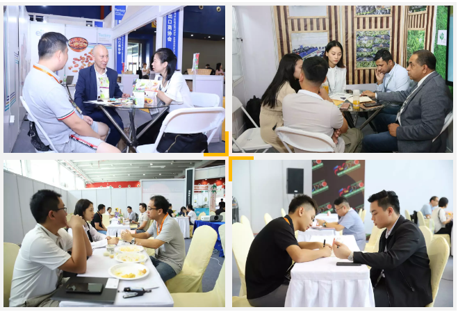 “椰榴芒”对接会现场果香四溢,掀起一场热带水果的狂欢浪潮!泰美味 、7D、犇牛、榙榙和中铿等企业展示了椰子、榴莲、芒果的鲜果及相关干果、果泥、果汁、蛋糕和雪糕等怡人美味。而在印度水果专场对接会上, Sahyadrifarms、Nature One Fresh Produce等多家企业又带来了香蕉、葡萄、芒果等新鲜可口的水果。众多给力的产品不仅惹人垂涎,更是吸引了不少采购商前来沟通洽谈。