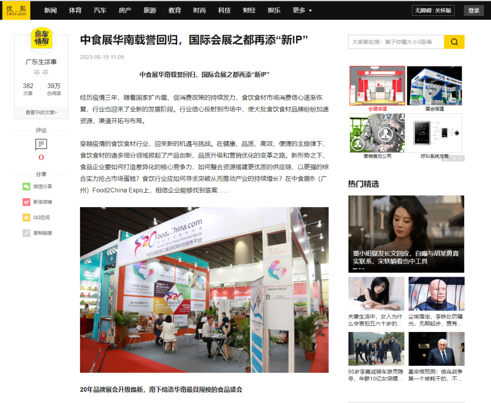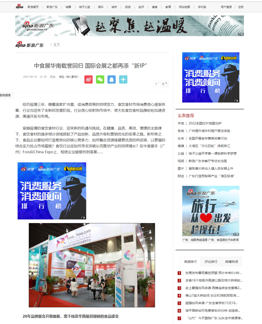 本次展会是广州今年重点打造的三大品牌展会之一,在规模和体量上全新升级,将全方位提升展商的参展效益和品牌推广效率。近日,来自新华报业网、新浪网、搜狐网、腾讯网、千龙网等多家主流媒体对中食展®(广州)品牌展进行全面深度报道,在线上开启一波刷屏趋势,参展人气进一步提升!