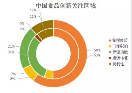 对于吃,全球的吃货似乎都有一个共识,就是要吃得开心。根据报告,为了让消费者的多种感官都能体验到喜悦,全球各个国家创新食品中,50.2%的创新食品都主张消费者的愉悦体验。在中国,这个比例高达60.2%,全球最高。多种感官体验,比如新的口味和口感,依然是最主要的趋势,对口感丰富的追求也依然势头强劲。