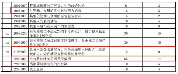 而婴幼奶粉的暂定税率仅为5%,而水解配方的婴幼奶粉更直接为0。威士忌酒和烈性酒同样仅为5%。