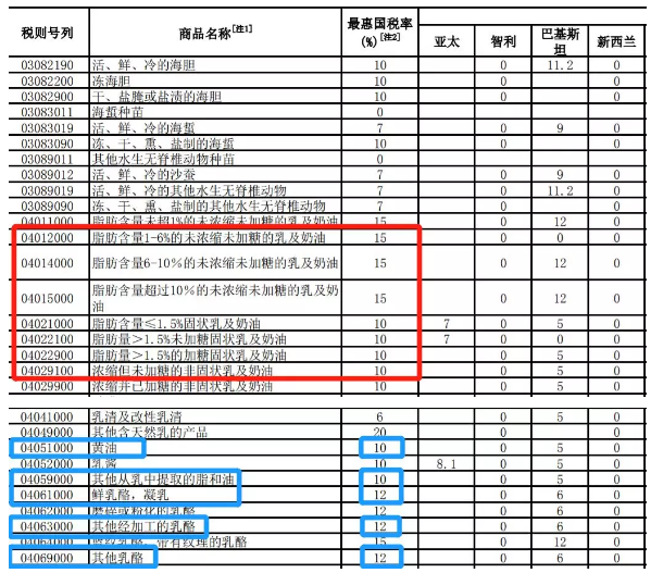 第一类农产品未浓缩及未加糖的乳及奶油(税则号列04012000、04014000、04015000);
